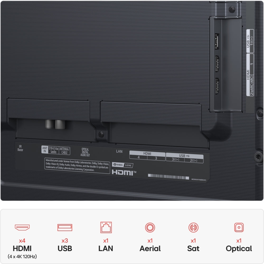 4 × HDMI (HDMI 2.1 likely), USB, Wi-Fi, Bluetooth